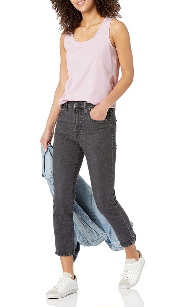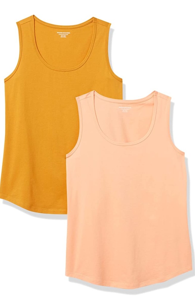 Essentials Camiseta sin Mangas de Corte Clásico 100% Algodón Mujer, Pack de 2.